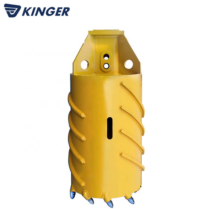 KINGER rock barrel can be Installed on rotary drilling rig to make the digging operation more efficient.When rotating, the drill core of the core rock drill has several different cutting angles that are matched with each other, and it is repeatedly broken and knocked at the position of the ring groove in the hole.It is mainly to cut hard rock quickly to increase the speed of rock entry.