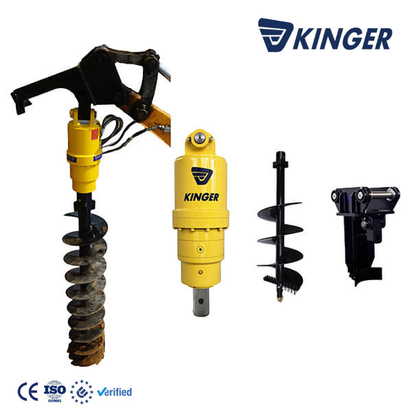 KINGER earth auger has 25 models ranges from YDH mini to YDH150000, which is suitable for 0.8-50ton excavator,skid steer and backhoe loader etc.