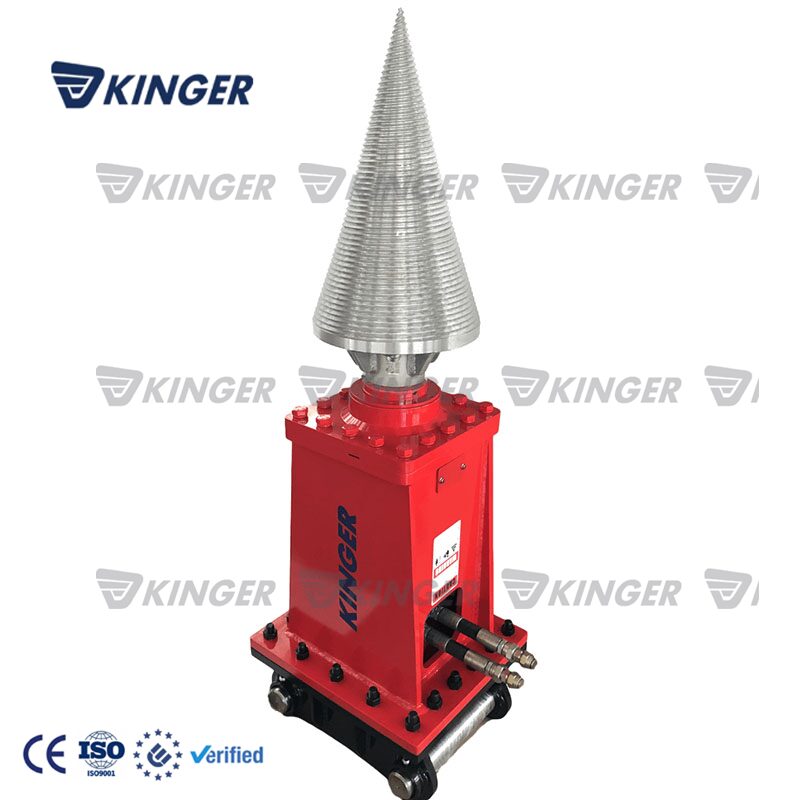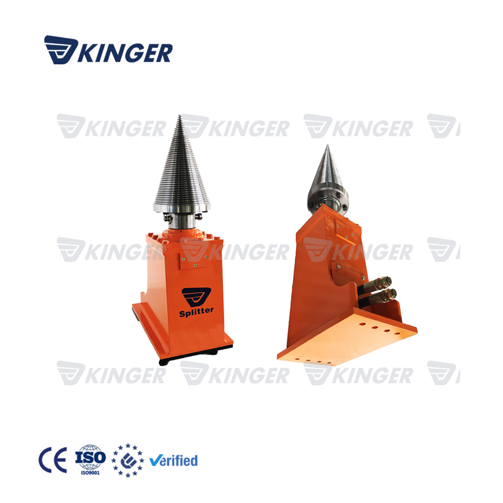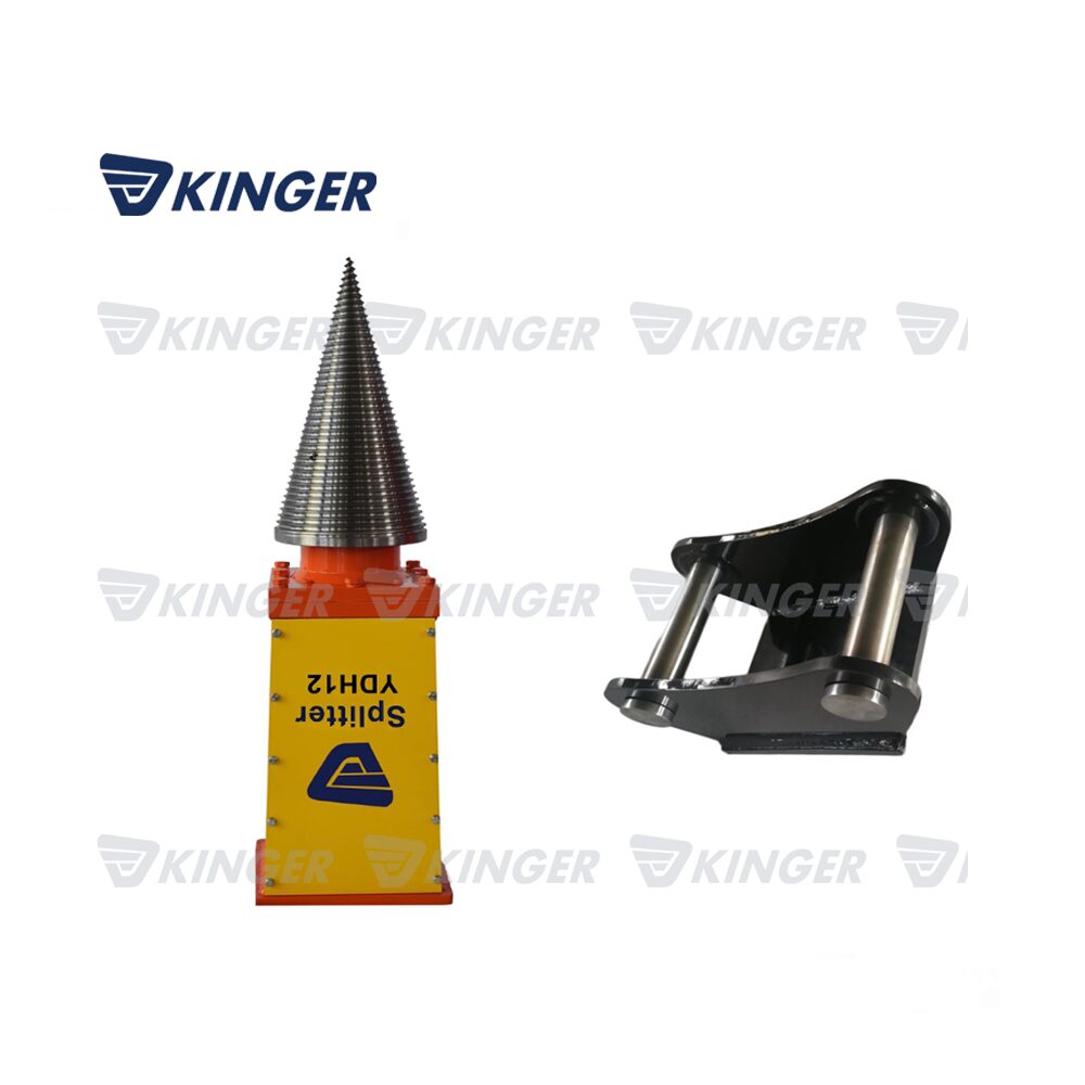 KINGER cone log splitter has 9 models ranges from YDH12 to YDH250,which is suitable for 2-30ton excavator,skid steer and backhoe loader etc.