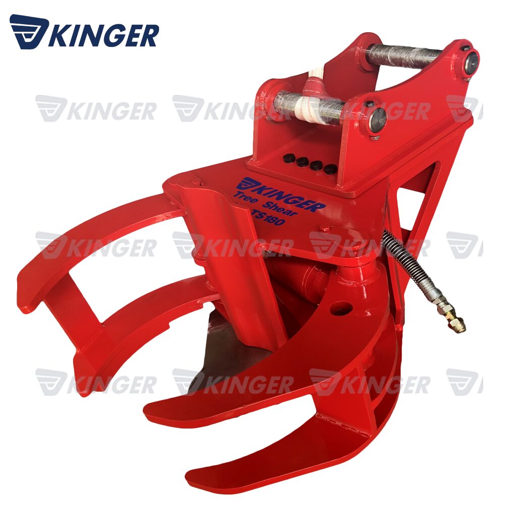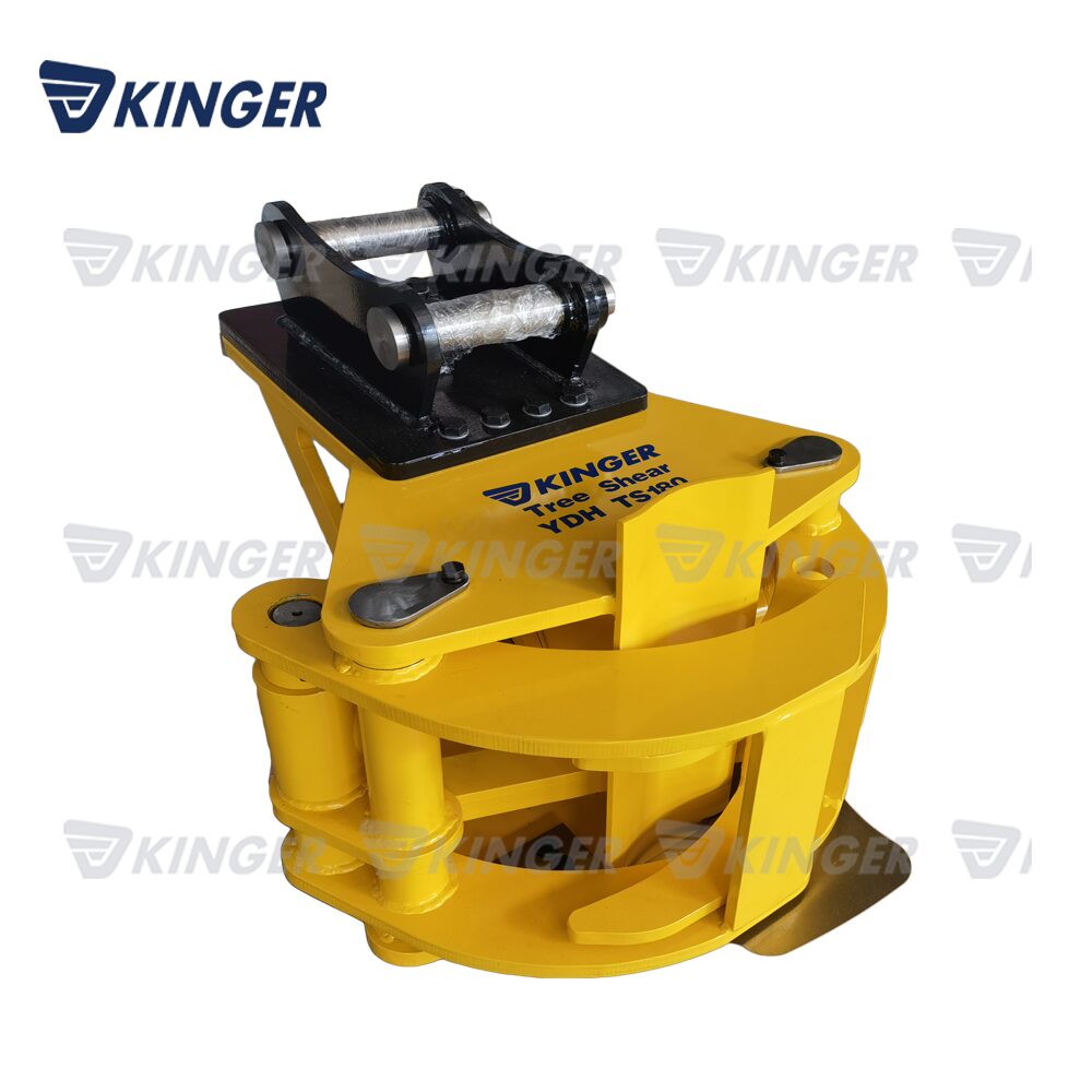 KINGER tree shear has YDH-TS180 model ,which is suitable for 8-12 ton excavators, skid steer loader, backhoe loader etc.
